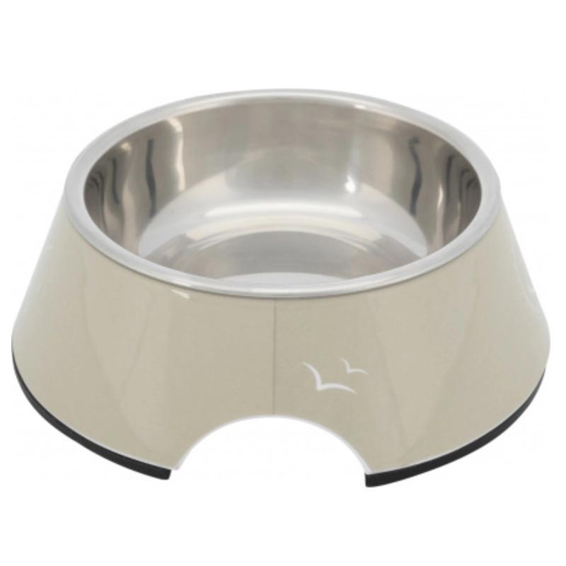 Trixie BE Nordic Melaminskål er en flot melamin skål med aftagelig stål skål. Melaminskålen kan bruges som madskål eller vandskål til din hund. Melamin skåken er skridsikker på grund af gummifødder .